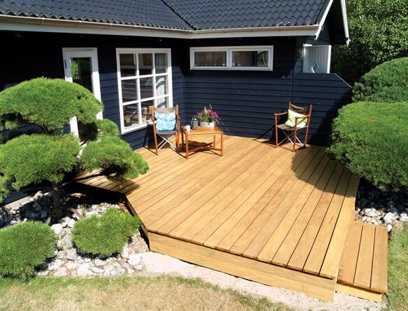 WOCA Exterior Oil wird im Außenbereich für die Grundbehandlung und für die Pflege von neuen oder zuvor ölbehandelten Holzoberflächen verwendet, z.B. Terrassen, Gartenmöbel, Holzfassaden usw.. Das Öl verleiht dem Holz eine starke wasser-und schmutzabweisende Oberfläche und schützt vor Schimmelpilzbefall und Vergilbung.