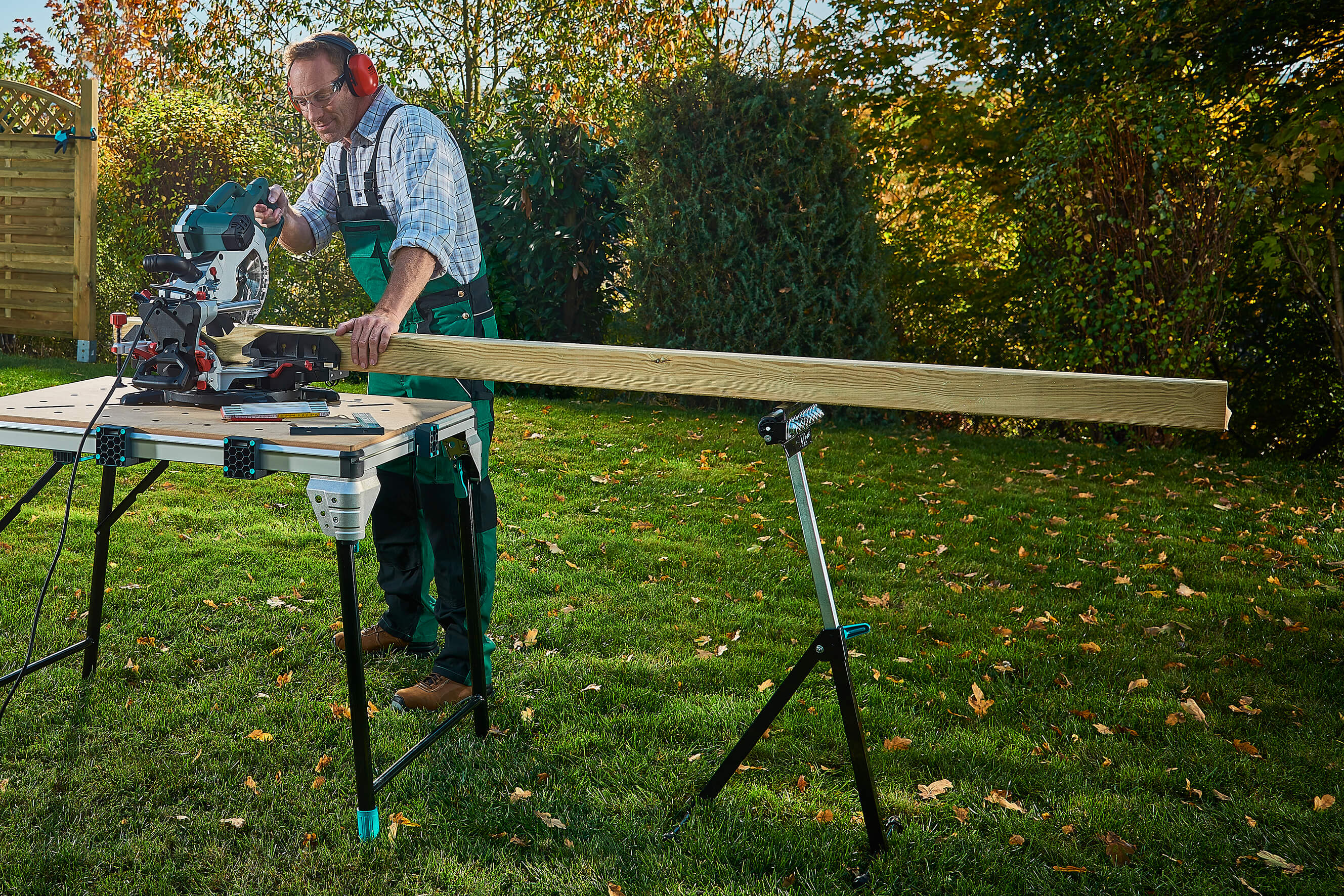 Der multifunktionale Auflage- und Rollenbock ist ideal zum Auflegen, Zuführen oder Abrollen langer Bretter, Dielen oder Platten.