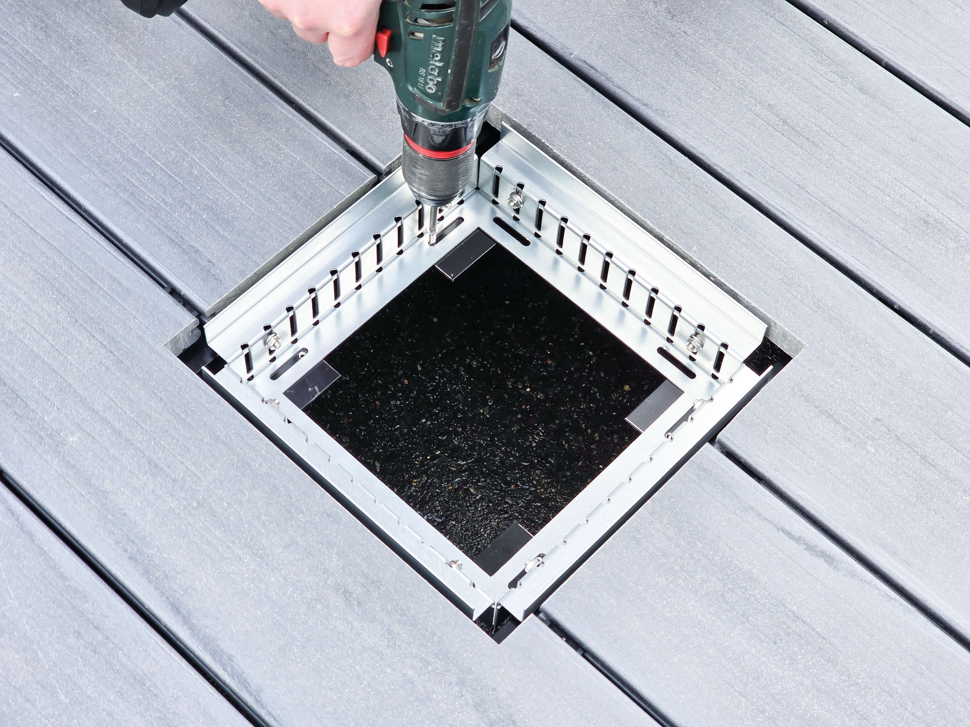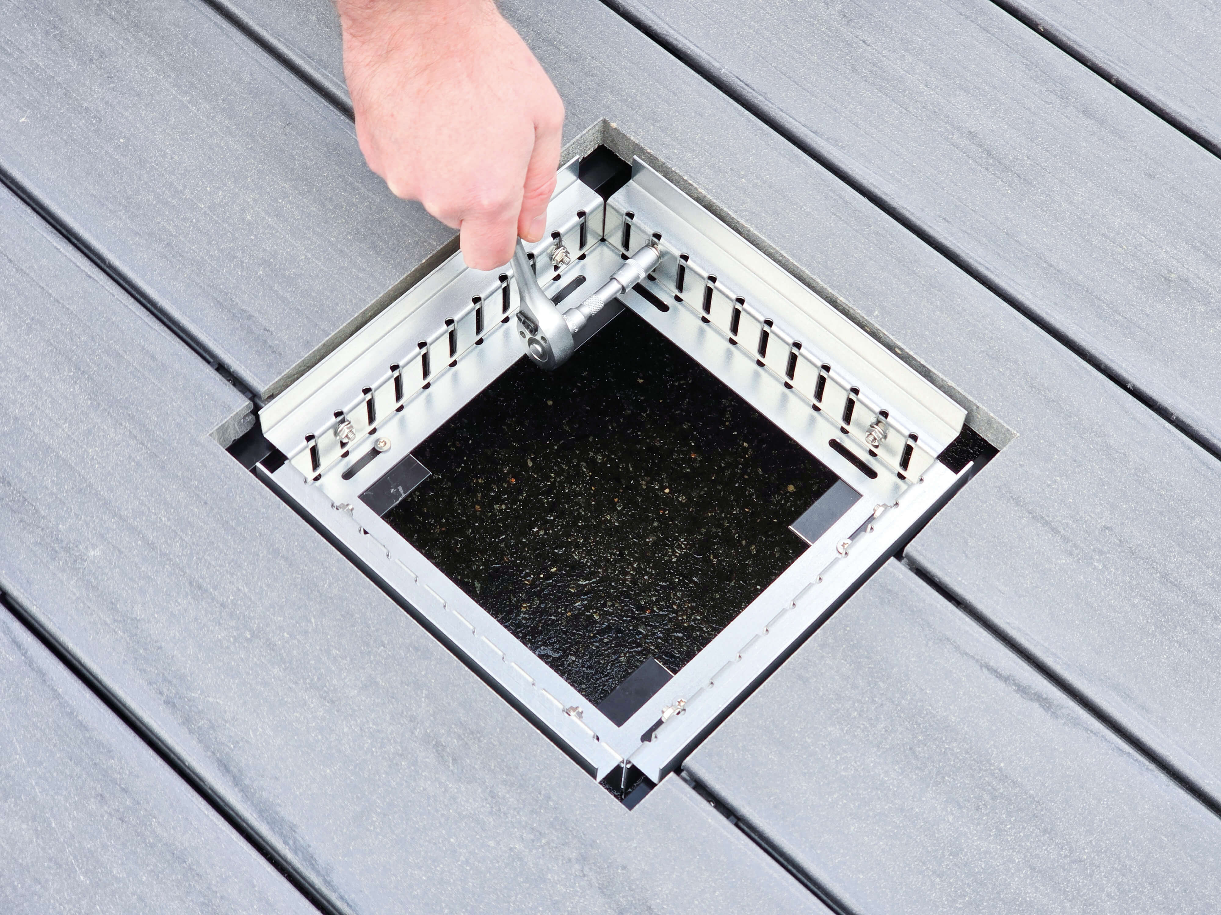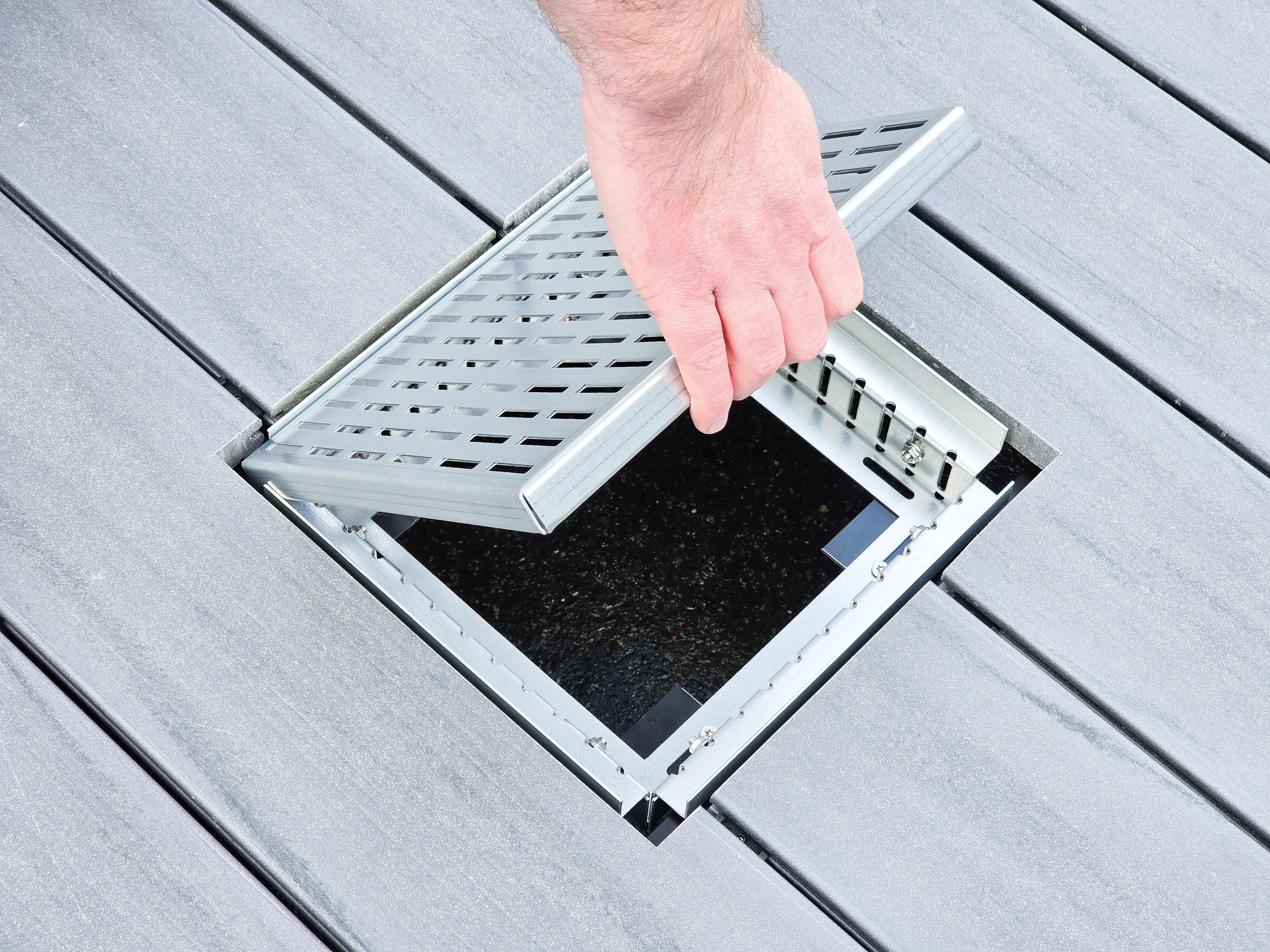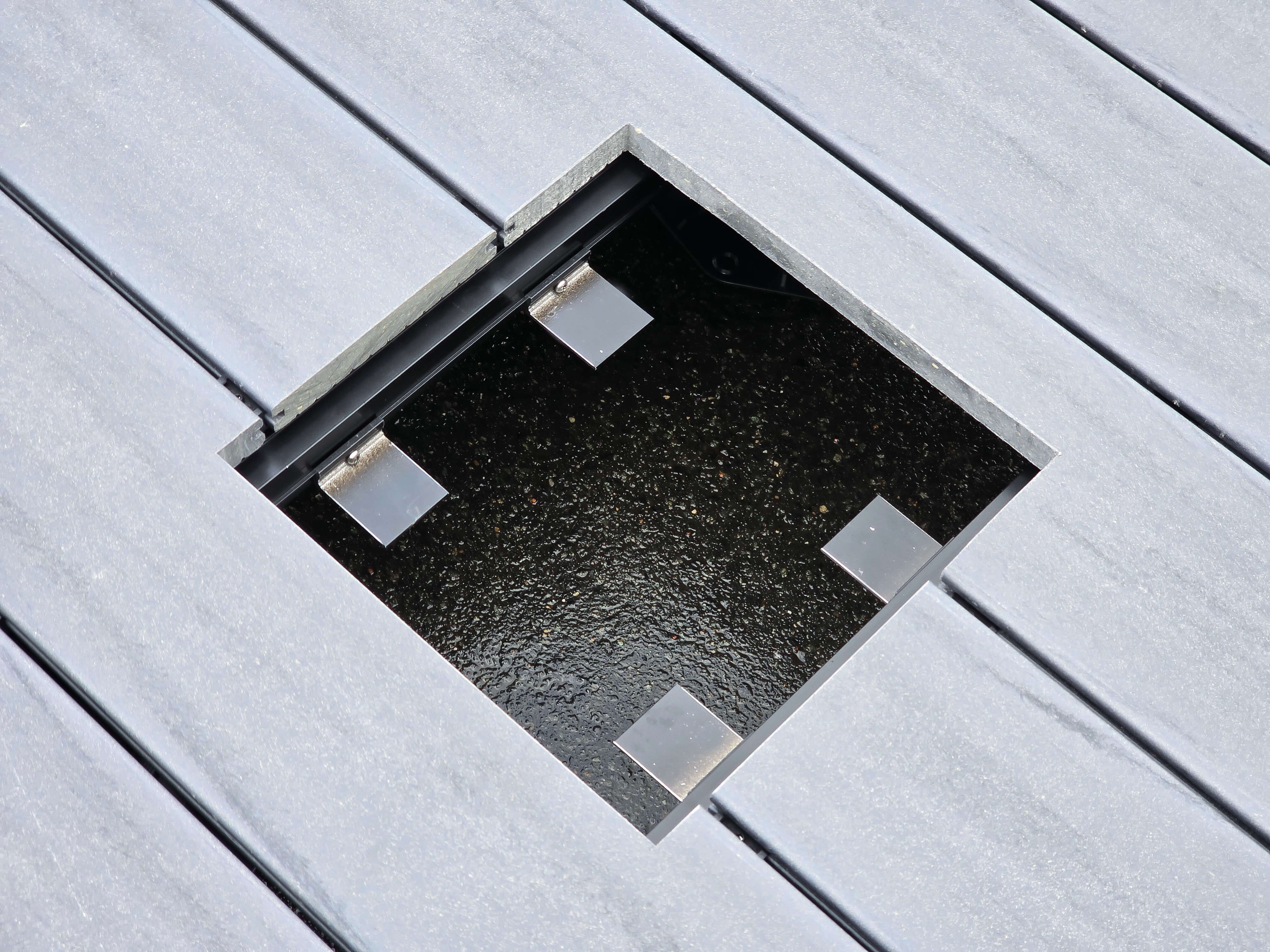 Endlich innerhalb der Terrasse verschiedene Revisionsaussparungen realisieren. Ob Zugang zu Elektroverteilern, Wasseranschlüssen, Lichtschächten, Lüftungsöffnungen uvm.