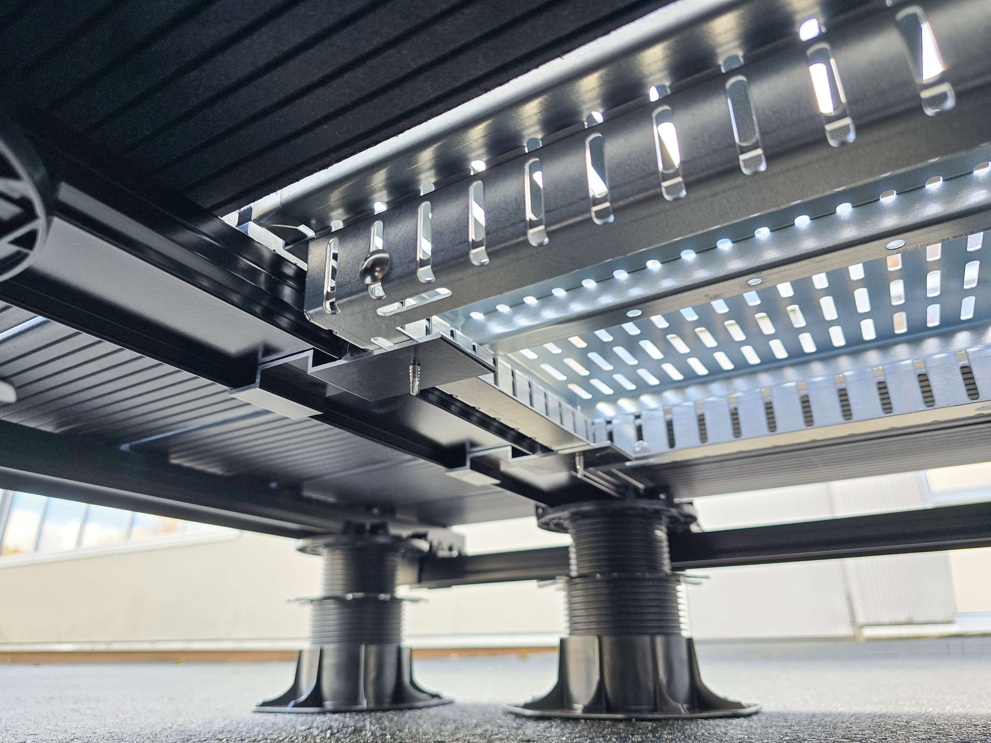 Das System ist höhenverstellbar (15mm) und damit auf verschiedenen Dielen-/Plattenstärken anpassbar. Optimal kompatibel zu den Alu-UK-Schienen Isostep. Weitere Flexibilität ist ebenfalls möglich - sprechen Sie uns an!
