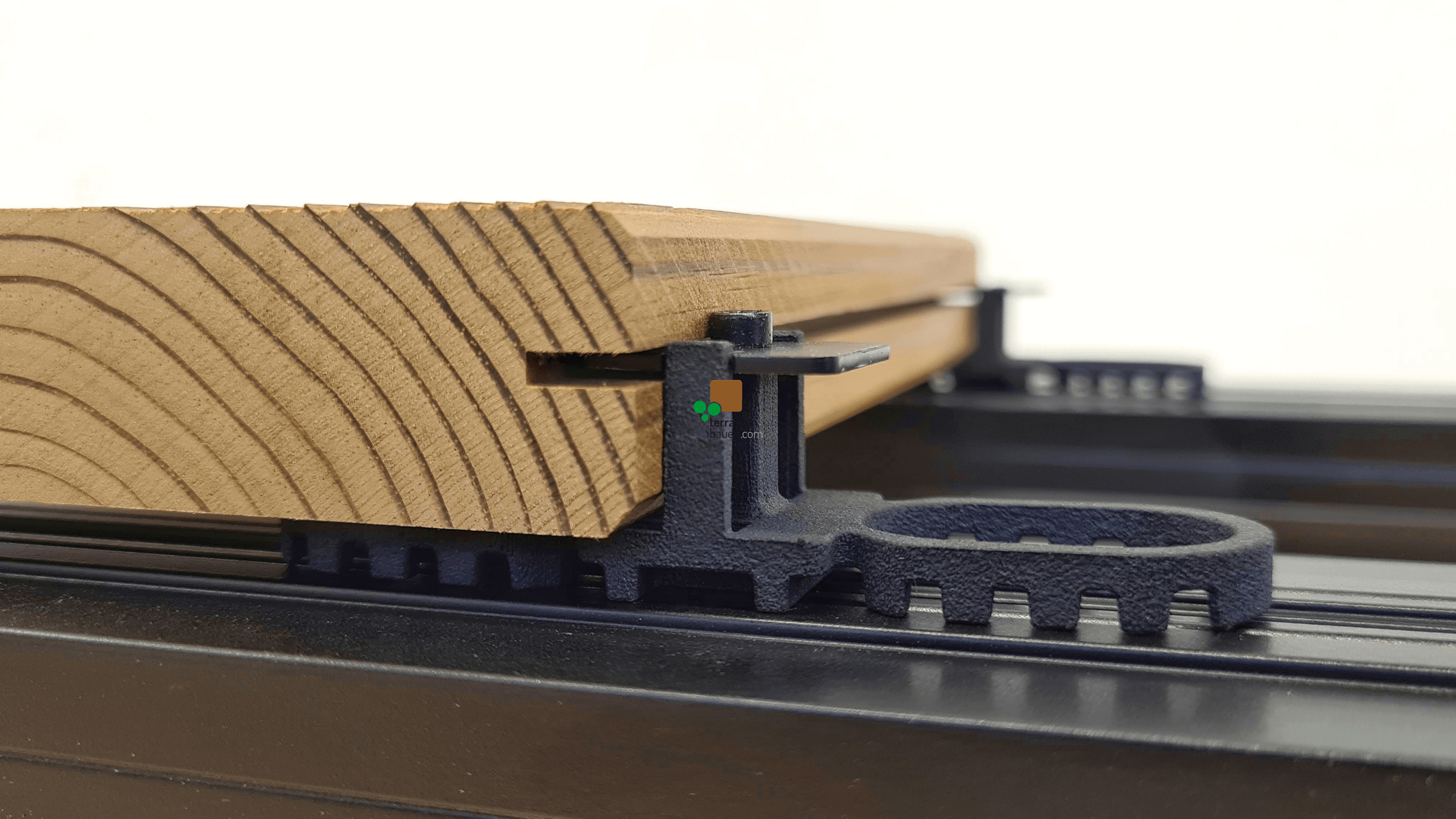 Dieses System ist eine Erweiterung/Weiterentwichlung der seit Jahren erfolgreich im Einsatz befindlichen Terraflex und ermöglicht die noch stabilere verdeckte Montage von nahezu allen Dielenarten.