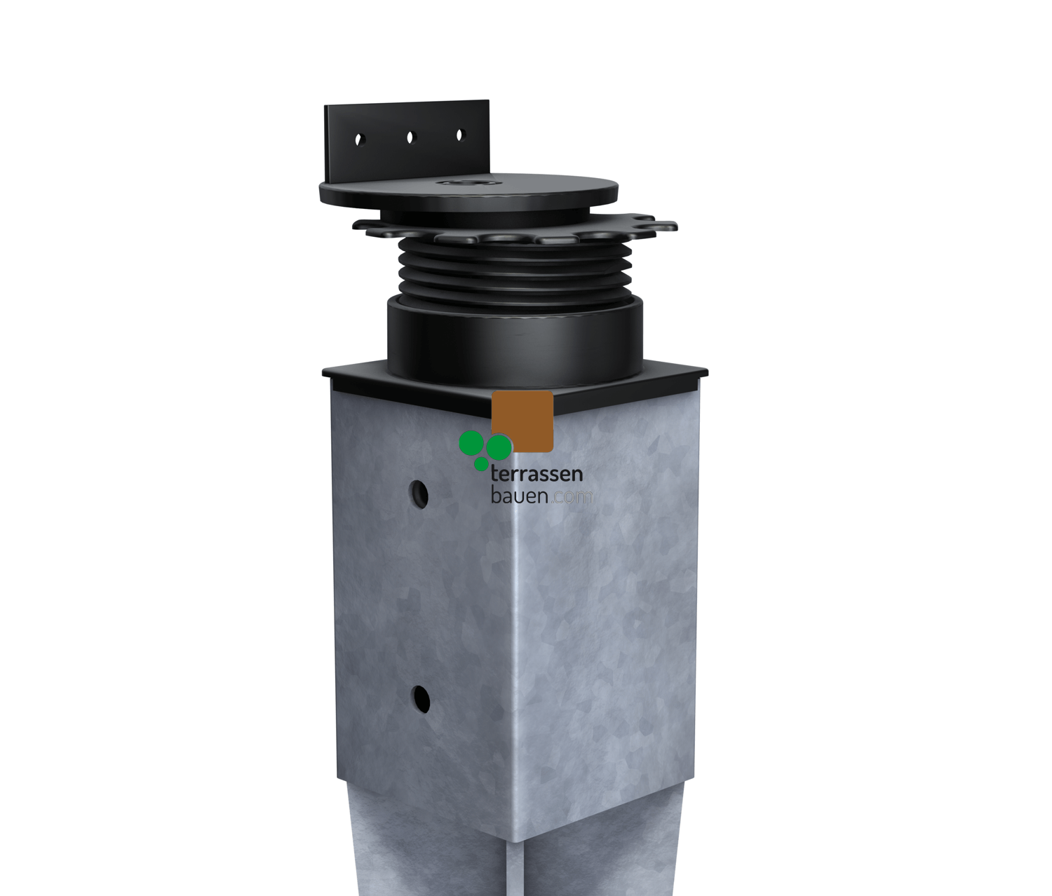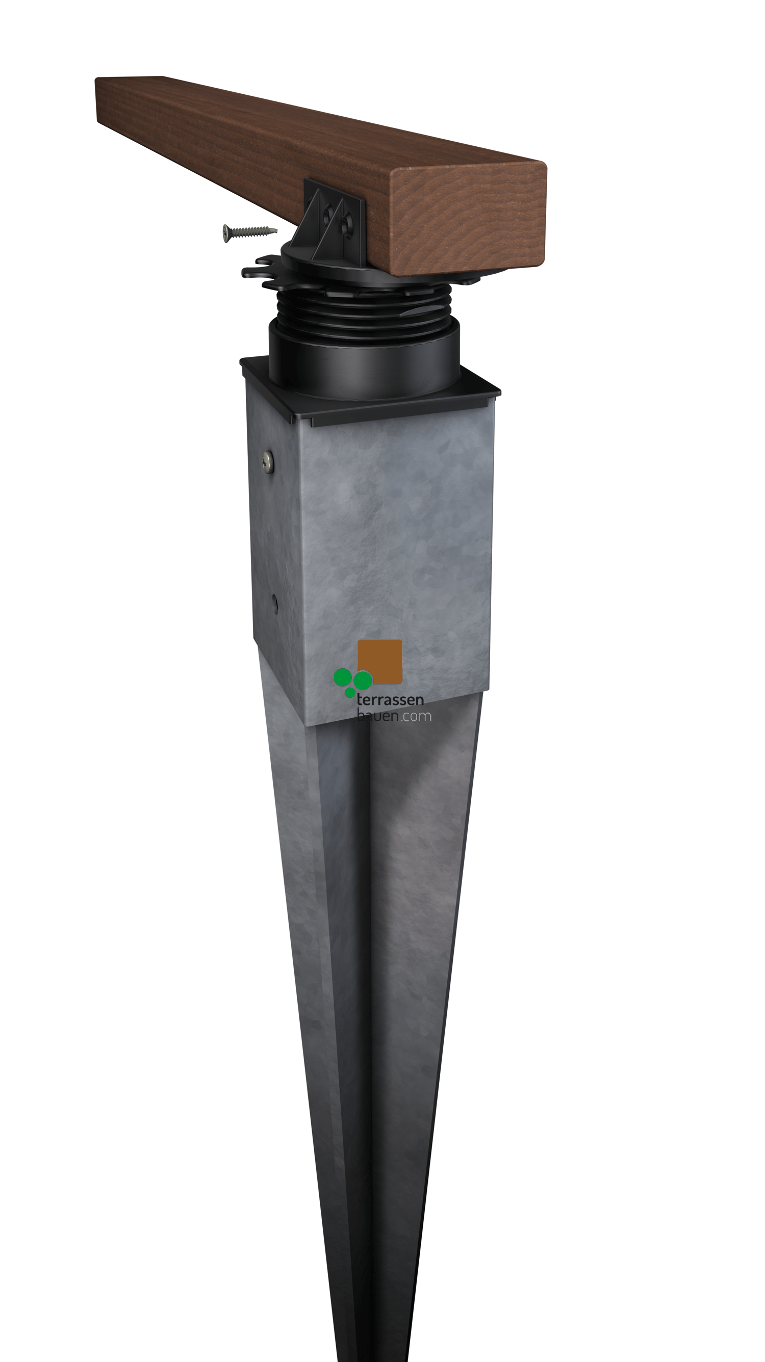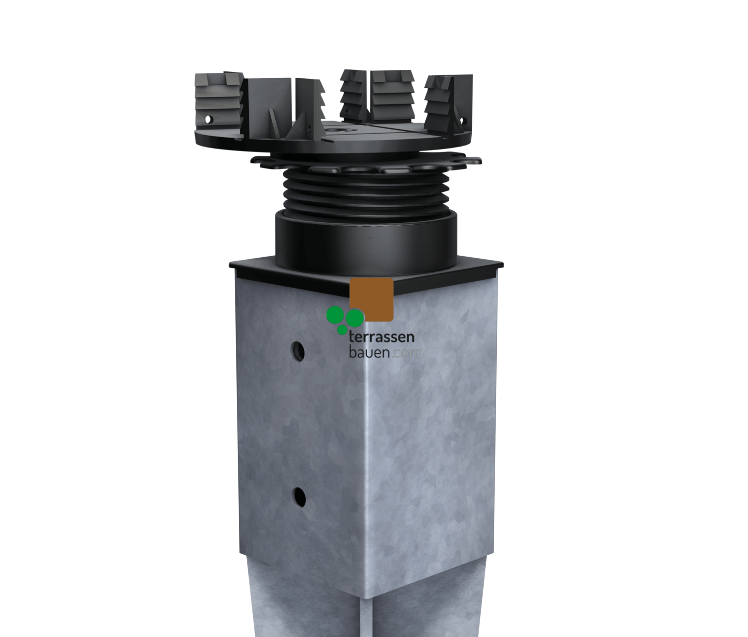 Mit diesen wirklich hochwertigen verzinkten Bodeneinschlaghülsen bauen Sie schnell und professionell Ihre Terrasse auf.