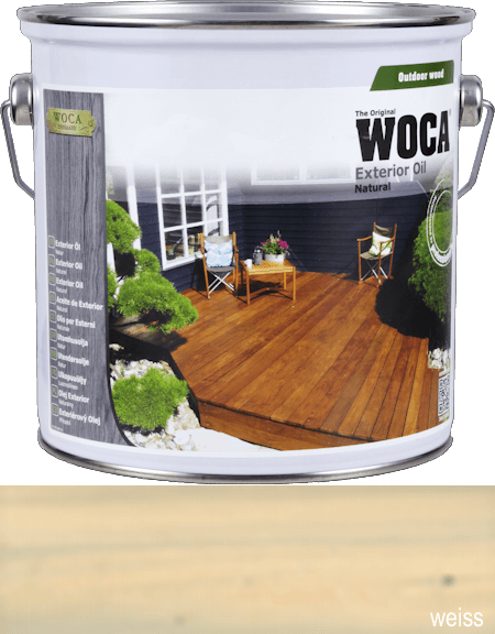 WOCA Exterior Oil wird im Außenbereich für die Grundbehandlung und für die Pflege von neuen oder zuvor ölbehandelten Holzoberflächen verwendet, z.B. Terrassen, Gartenmöbel, Holzfassaden usw.. Das Öl verleiht dem Holz eine starke wasser-und schmutzabweisende Oberfläche und schützt vor Schimmelpilzbefall und Vergilbung.